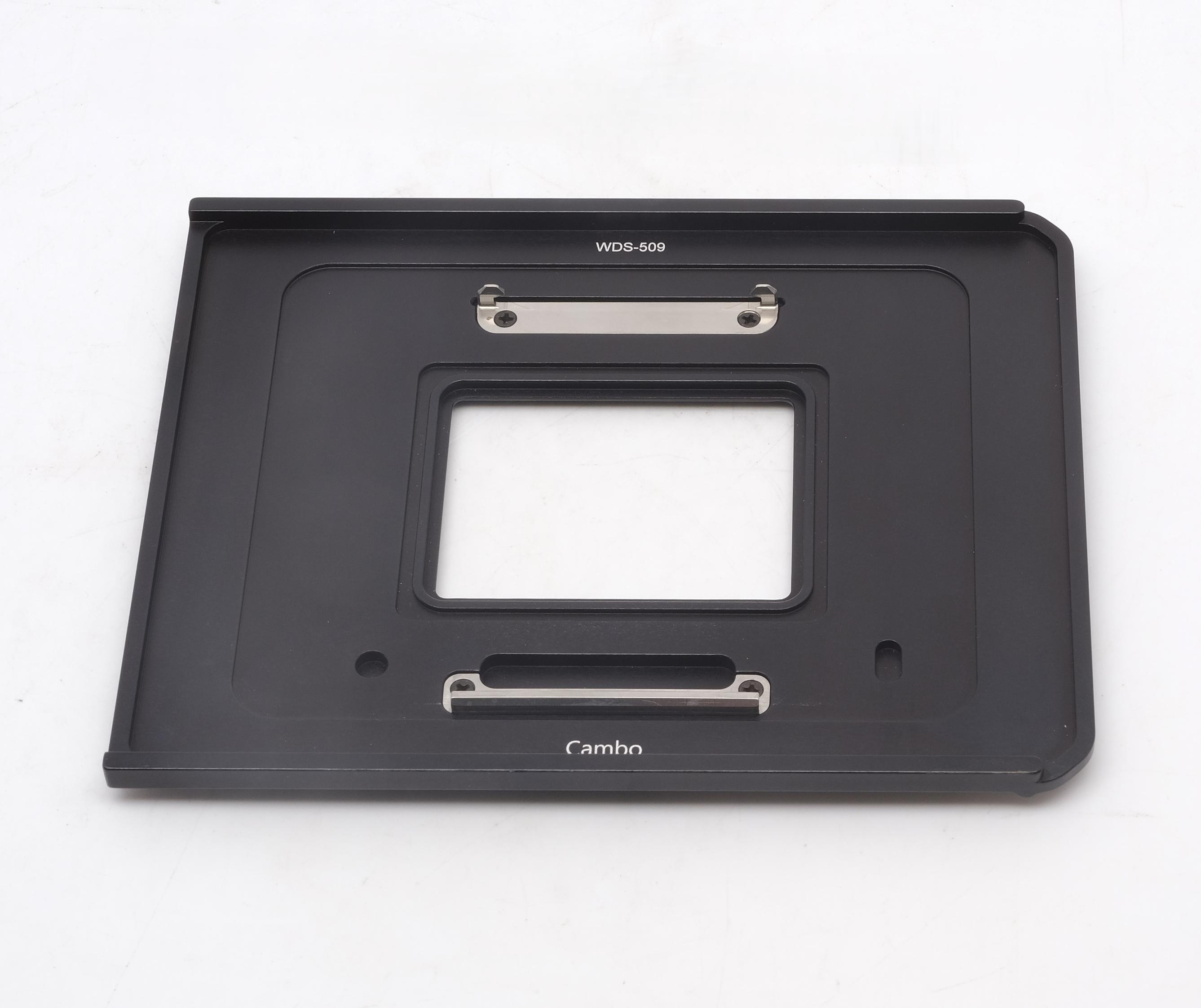 This Cambo graflock plate can be used to mount a digital back (PhaseOne IQ /XF /DF and Mamiya 645AFd compatible) to the 4x5" setup of the Cambo WideDS or any other 4x5" view camera with graflock sliders.